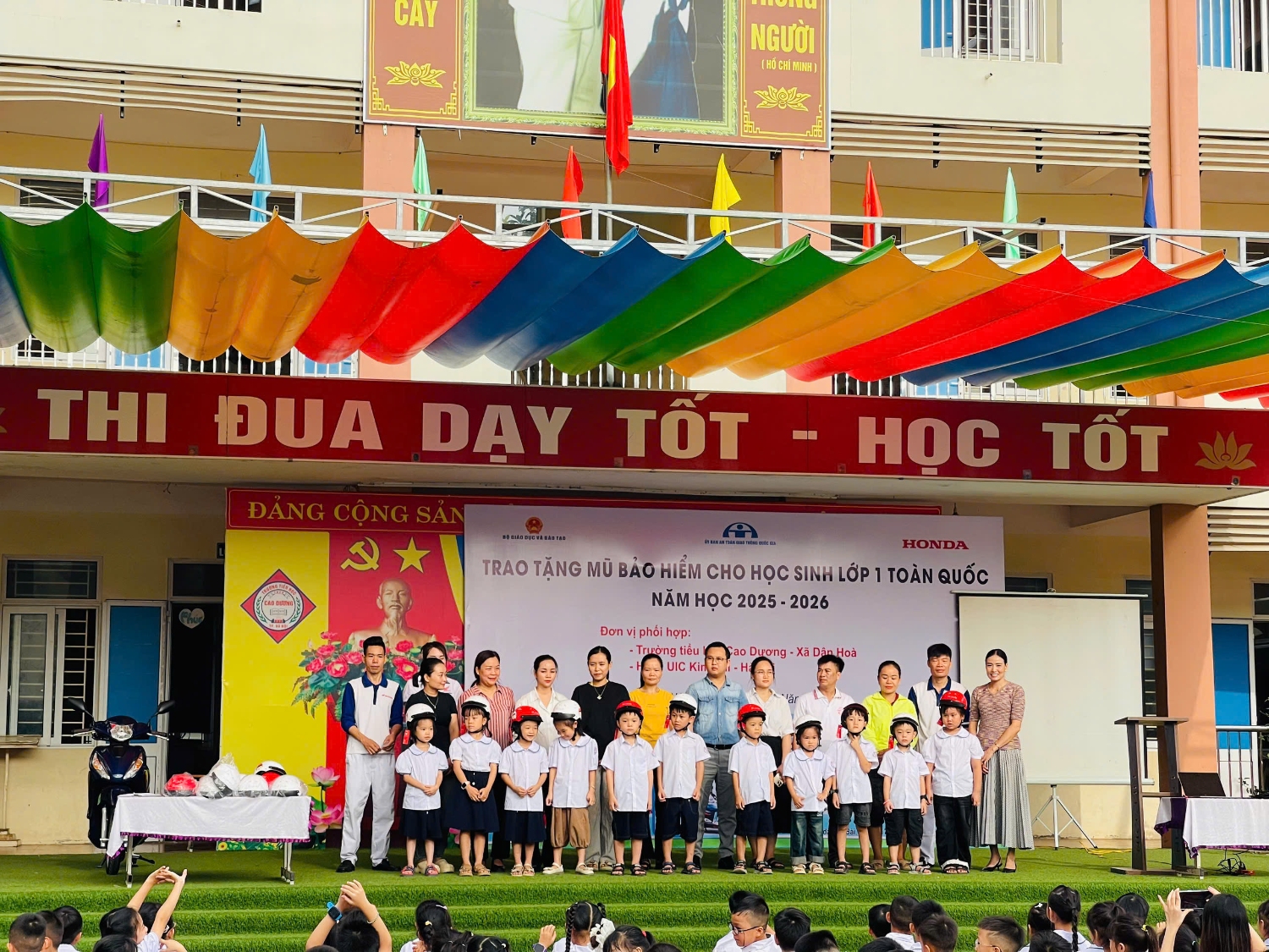 Công ty HonDa tuyên truyền luật ATGT và tặng mũ bảo hiểm cho HS lớp 1 năm học 2025-2026