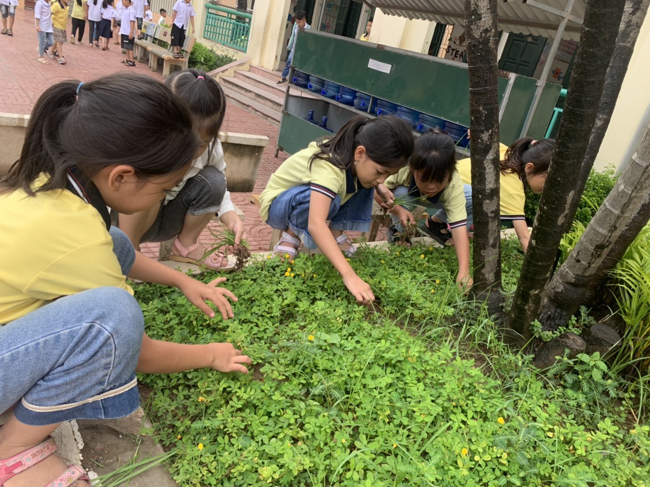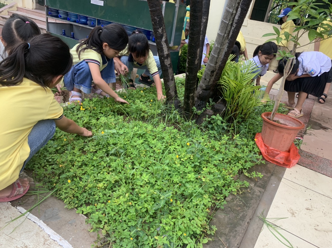 HOẠT ĐỘNG NGOÀI GIỜ LÊN LỚP GV CÙNG HỌC SINH THỰC HIỆN PHÚT SẠCH TRƯỜNG VÀ VHAWM SÓC CÔNG TRÌNH MĂNG NON