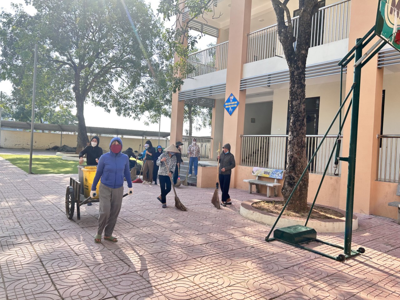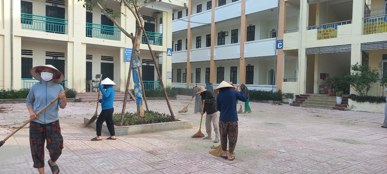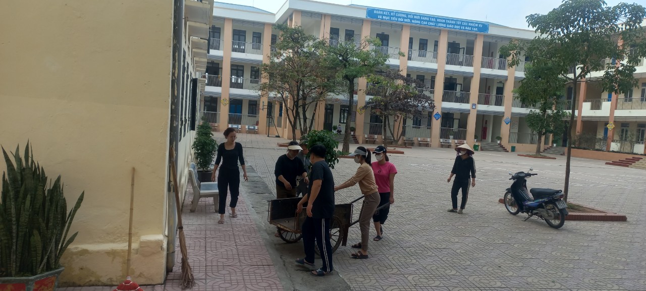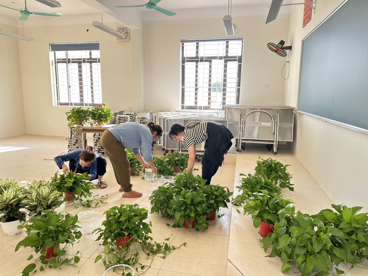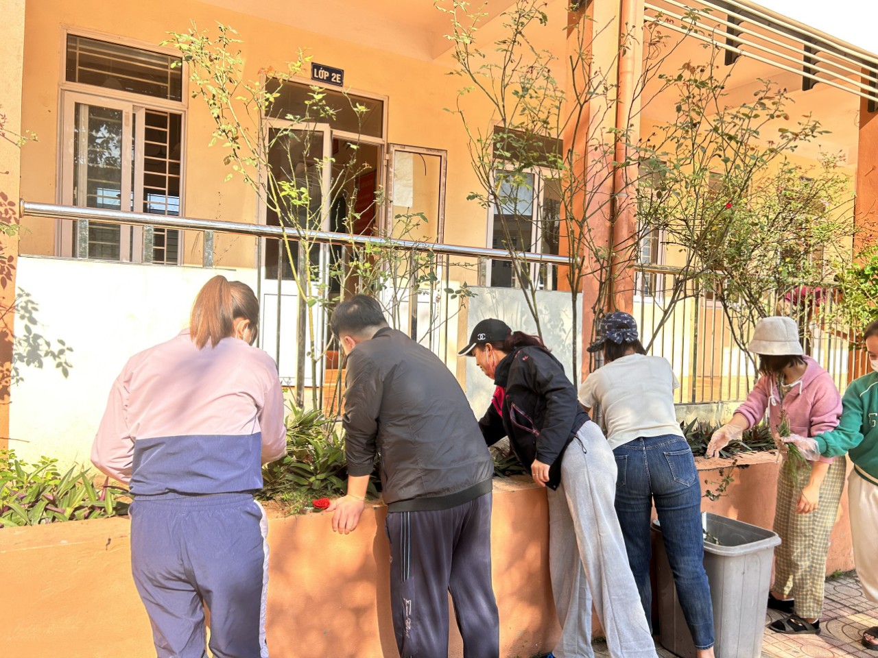 Hoạt động tổng vệ sinh khuôn viên trường học, cắt tỉa cây cảnh; trang trí lớp học