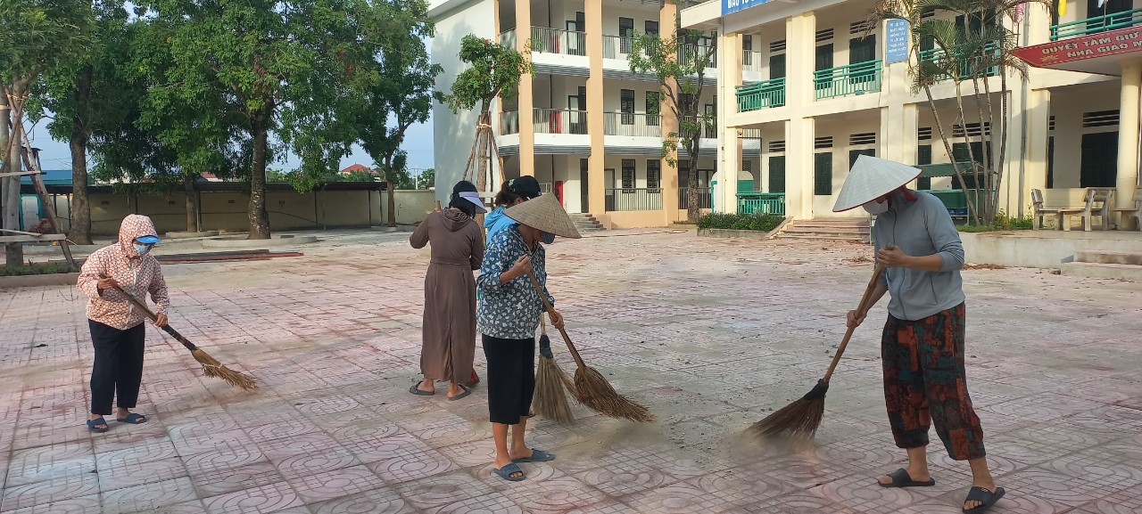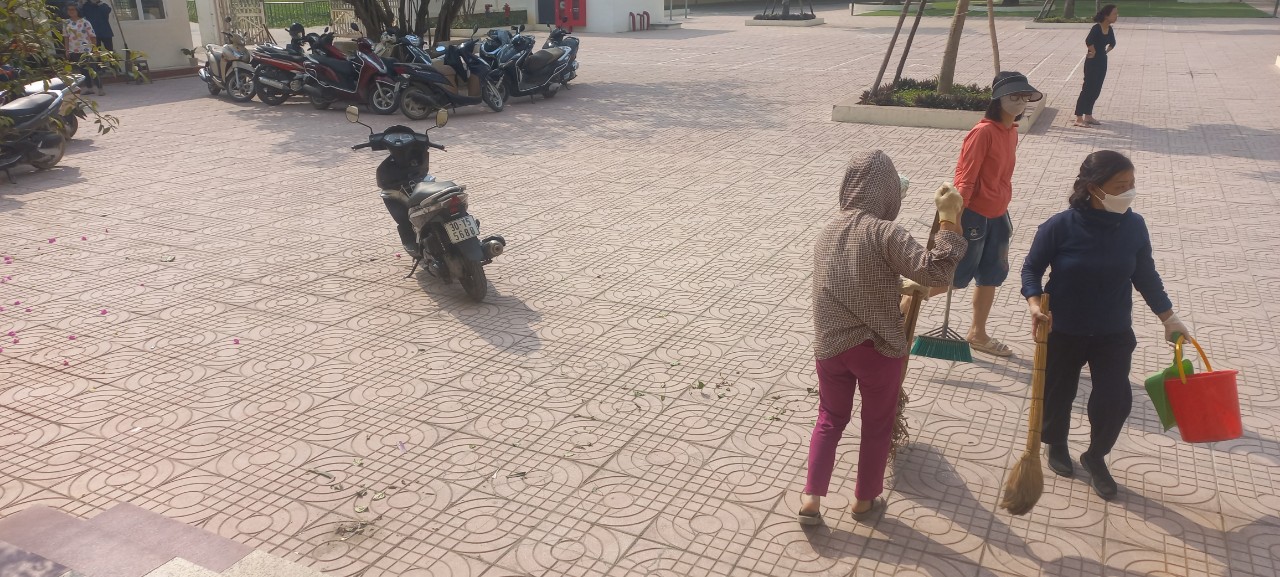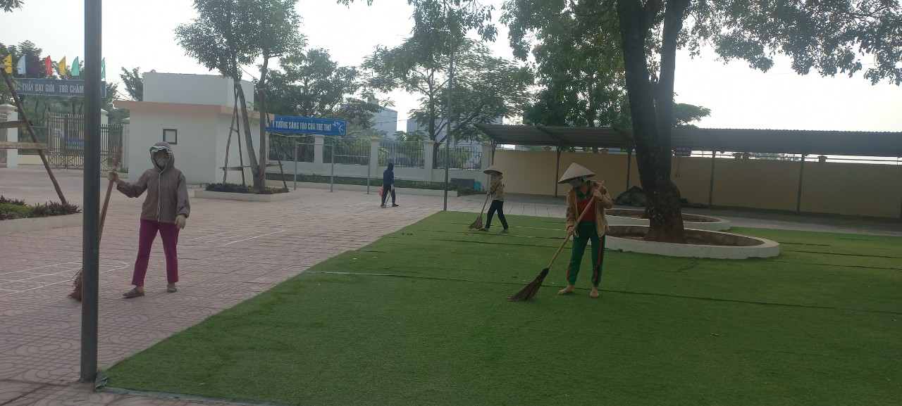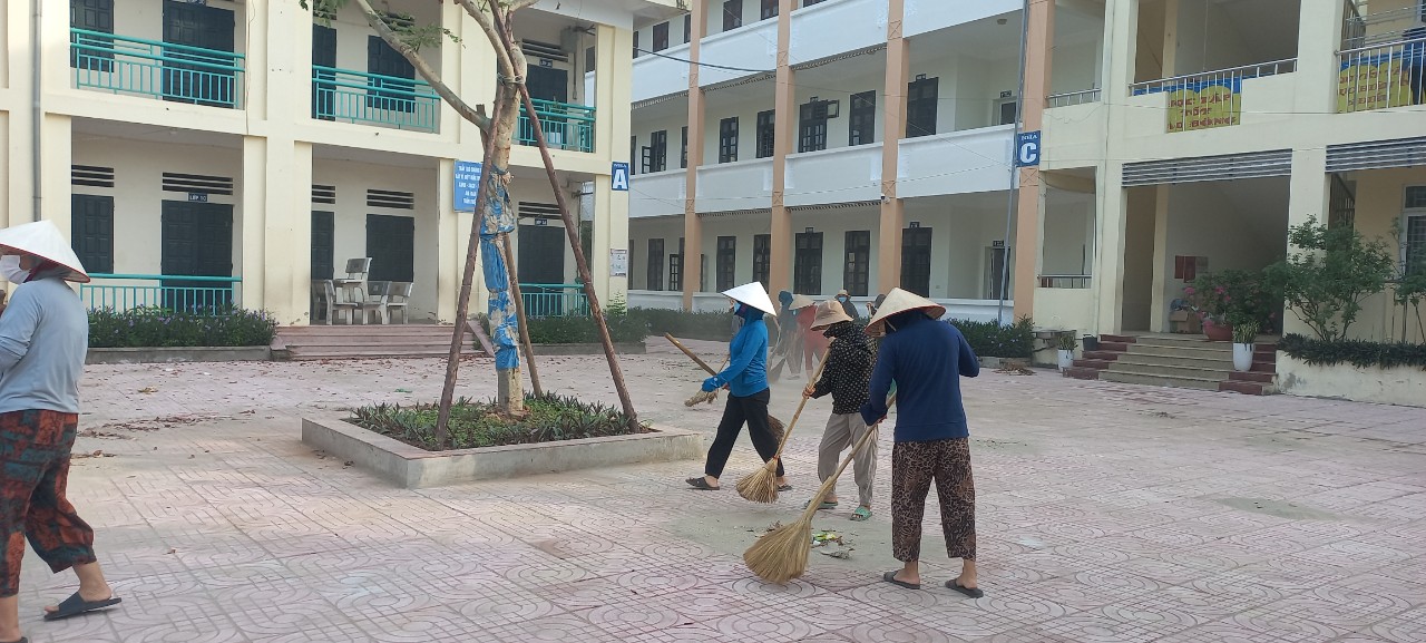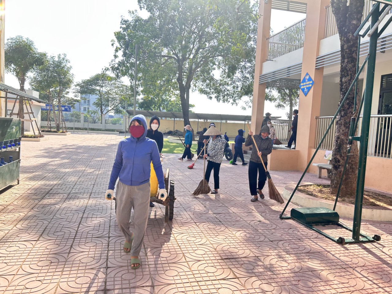 Hoạt động tổng vệ sinh khuôn viên trường học, cắt tỉa cây cảnh; trang trí lớp học